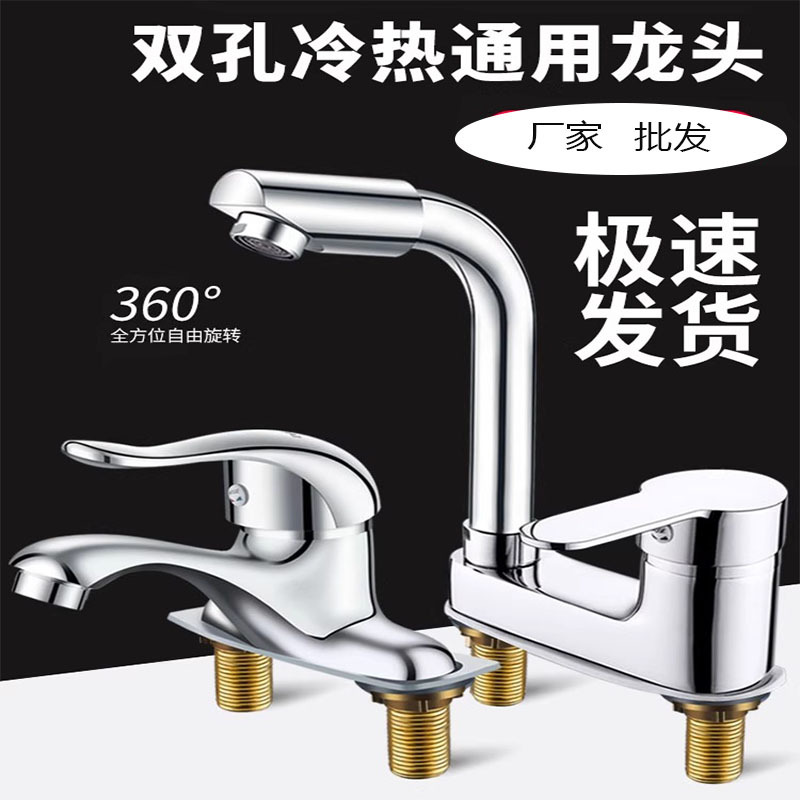 双孔冷热面盆水龙头全铜双控浴室卫生间洗脸盆龙头两孔面盆混水阀