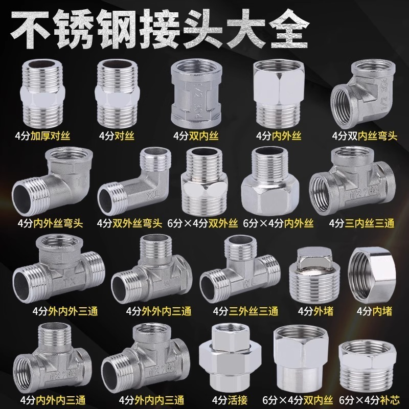 不锈钢4分对丝直接外丝三通弯头水管配件6分转4变径内丝接头管道