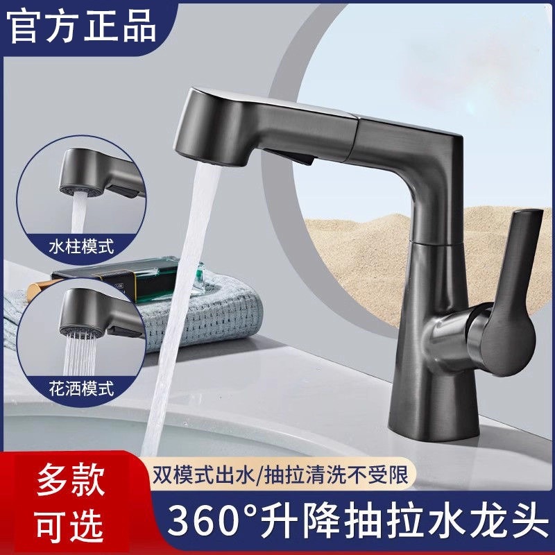 升降抽拉式洗脸盆水龙头冷热两用二合一卫生间洗手面盆浴室家用