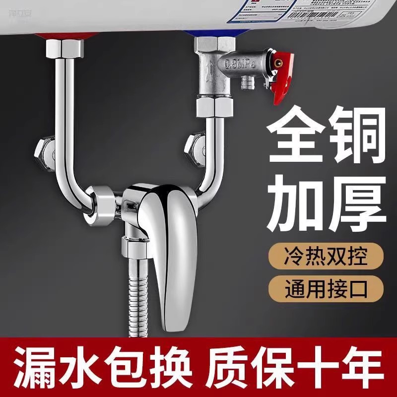 明装热水器混水阀304不锈钢 二进一出冷热U型淋浴浴室明装混合阀