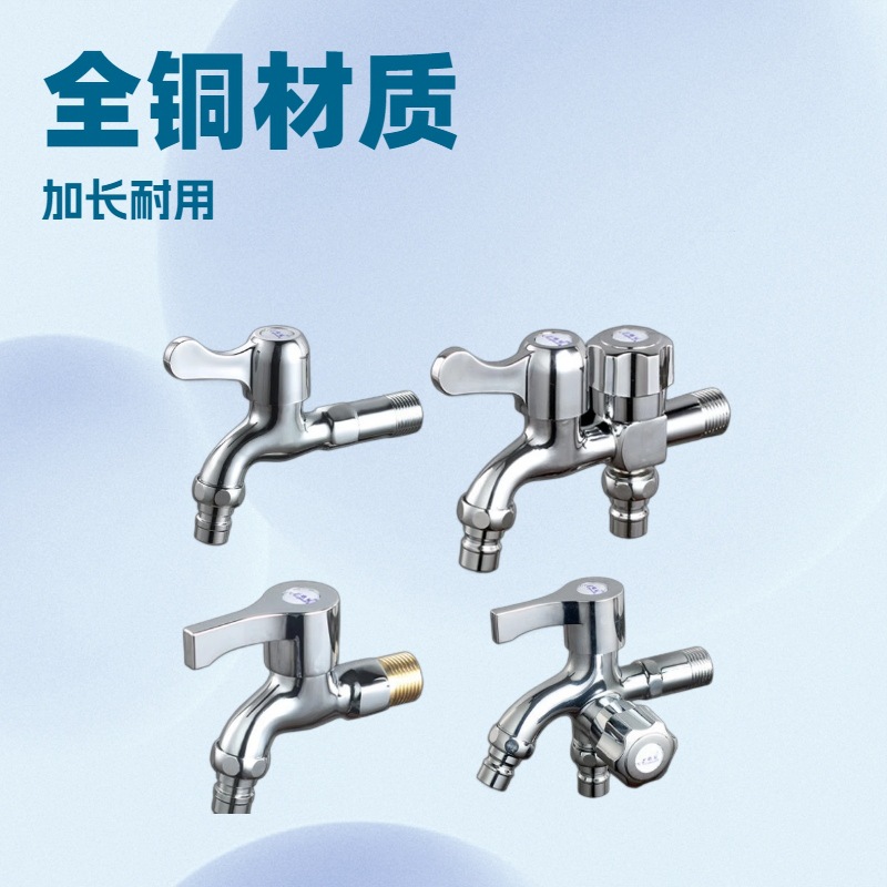 铜加长洗衣机水龙头全自动洗衣机一进二出4分龙头铜阀芯衣机龙头
