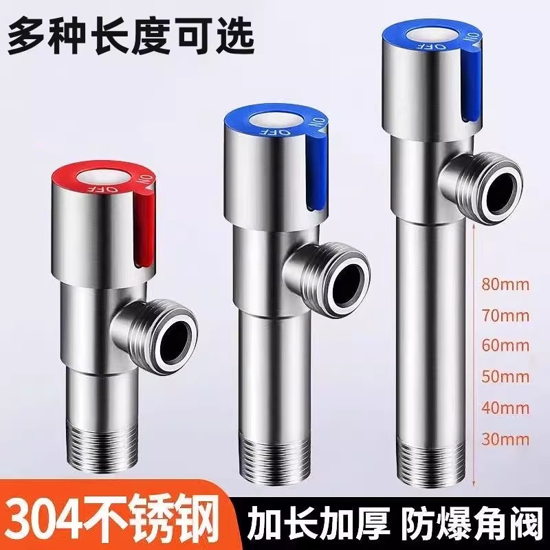 304不锈钢加厚三角阀4分接口冷热角阀马桶热水器加长不锈钢角阀
