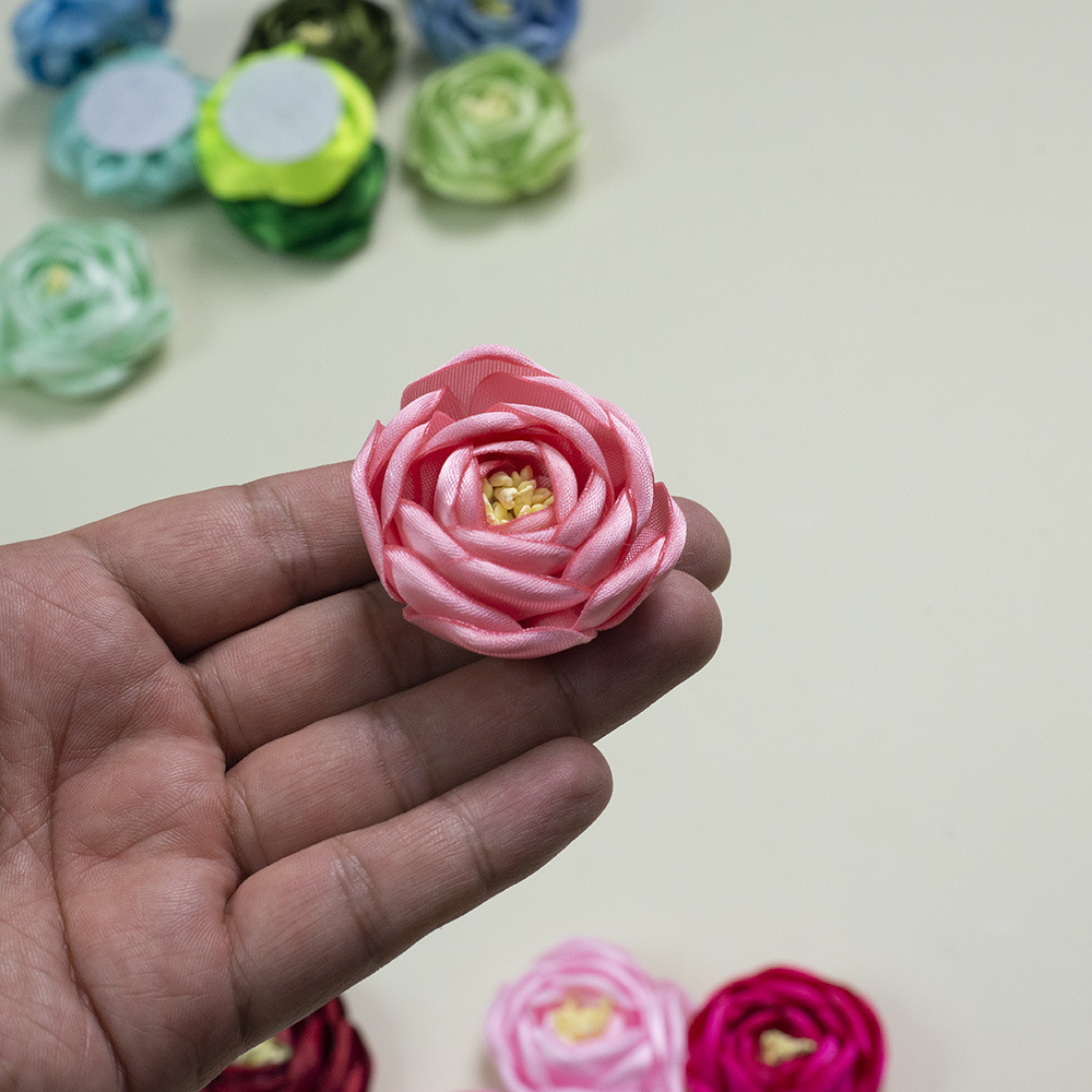 5cm立体丝带玫瑰花diy平面多层缎带花儿童发饰胸花宠物挂饰花配件