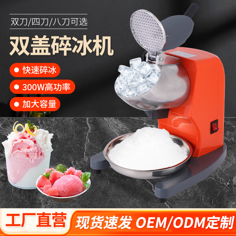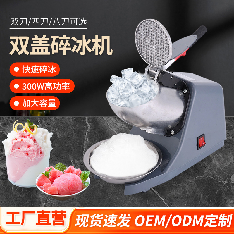 跨境热销新款双盖碎冰机商用电动刨冰机奶茶店半自动商用冰沙机