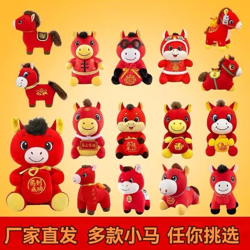 2026马年吉祥物公仔年货红色小马毛绒玩具生肖马活动礼品红马玩偶