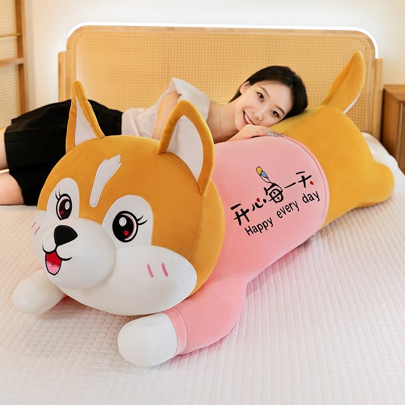 哈士奇毛绒玩具长条柴犬抱枕娃娃女孩陪睡夹腿玩偶公仔羽绒填充