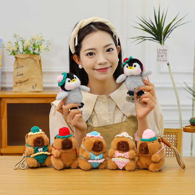 夏威夷卡皮钥匙扣可爱水豚公仔巴拉企鹅毛绒玩偶挂件卡皮巴拉娃娃