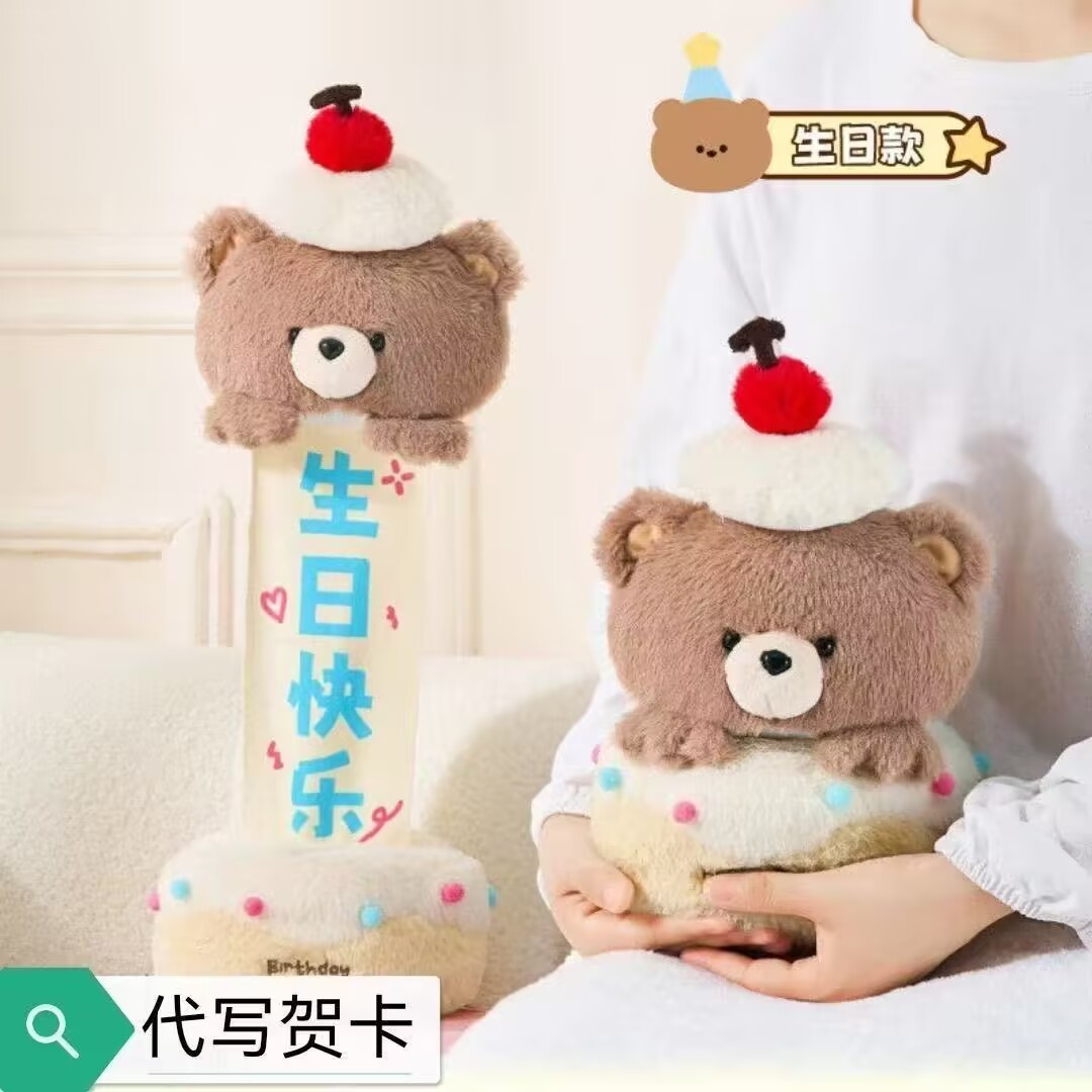 创意小熊生日蛋糕造型毛绒玩具可抽拉横幅打开公仔玩偶送生日礼物