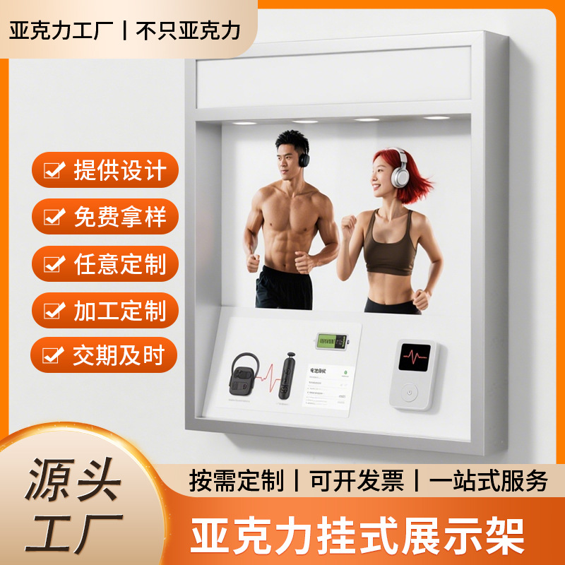 亚克力数码产品展示架挂式展示柜无线耳机试听LED展示台展会展览