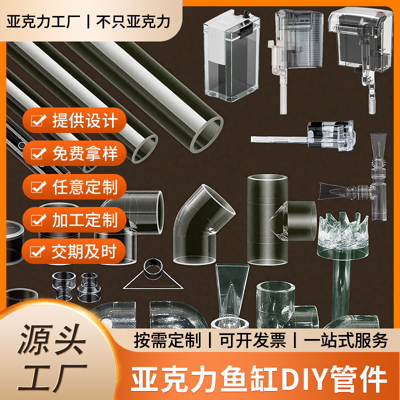 亚克力DIY水管配件客厅小型家用斗鱼缸桌面水族箱全套高透配件头