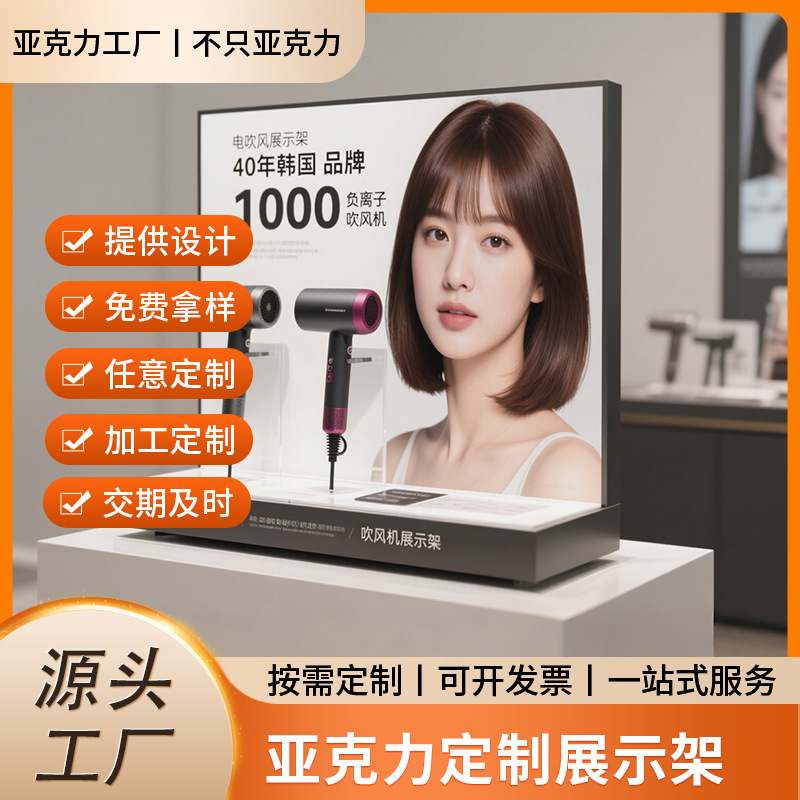 亚克力吹风机展示架可带led发光带屏幕专卖店商场陈列架展示柜台