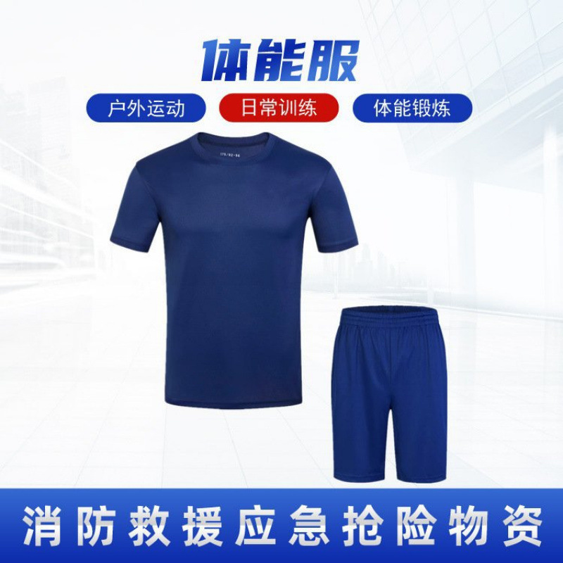 夏季体能服户外训练体能服圆领速干运动服套装夏季深蓝色速干服