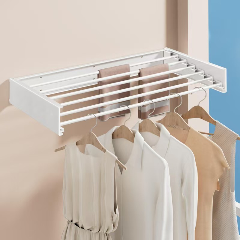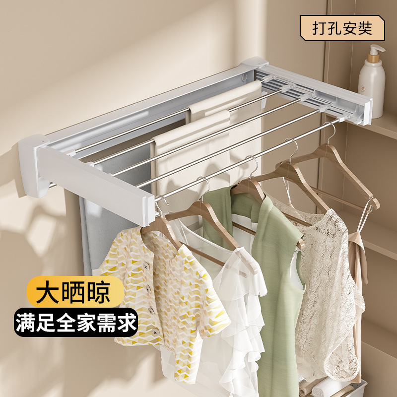 阳台隐形晾衣架室内多功能壁挂衣服毛巾收纳挂杆折叠伸缩晾晒架