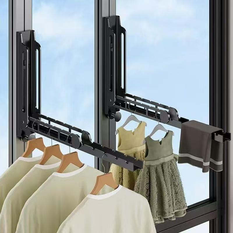 折叠晾衣架阳台隐形伸缩室内晒衣架免打孔壁挂式飘窗户外晾衣杆