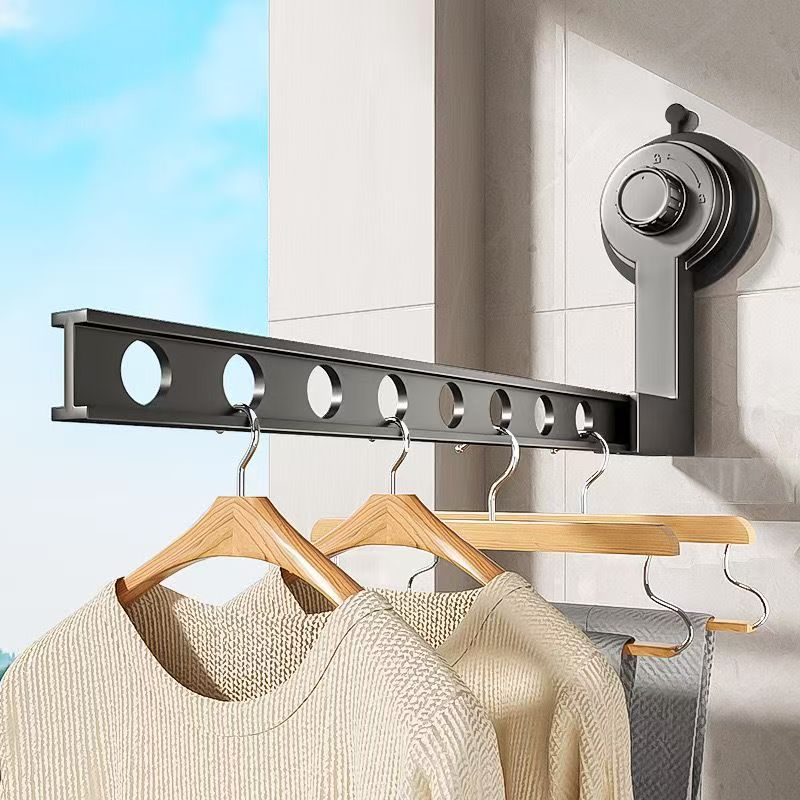 吸盘隐形伸缩晾衣架阳台壁挂式折叠家用免打孔飘窗台室内晒衣神器