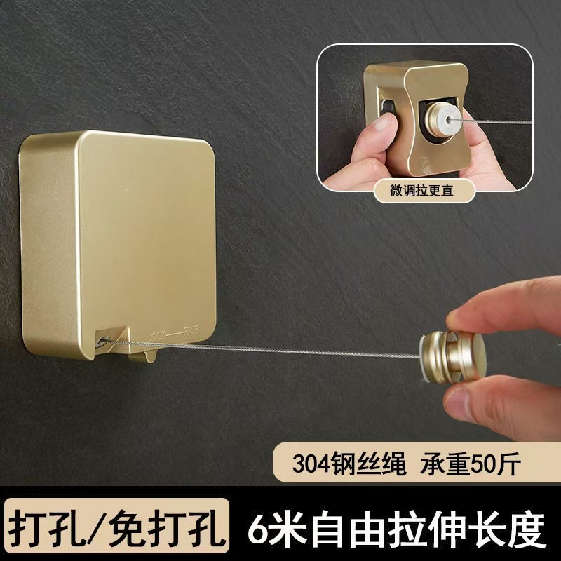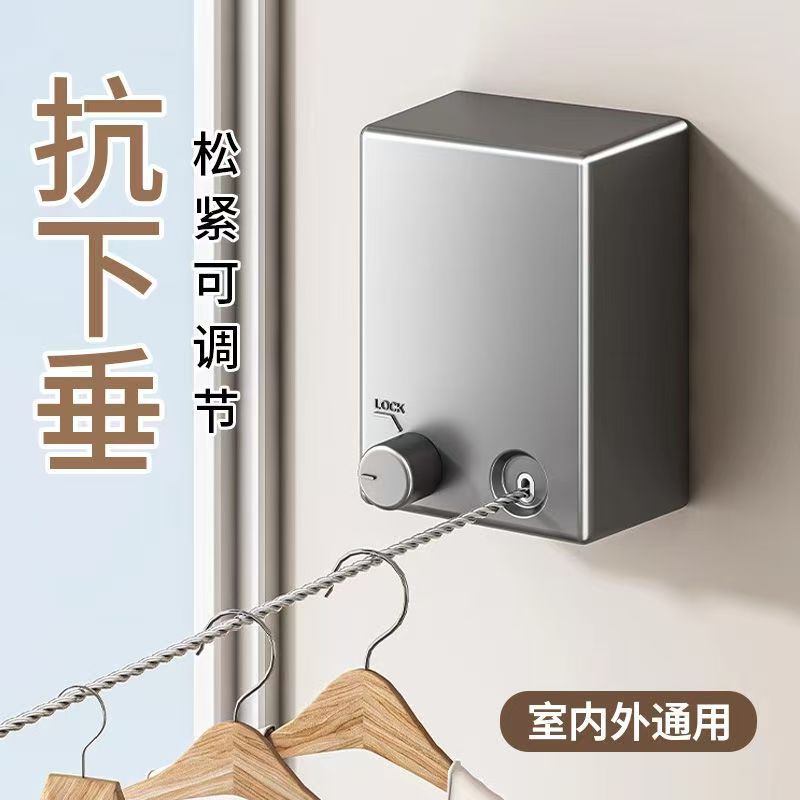 6米免打孔隐形晾衣绳阳台壁挂伸缩防风挂衣钢丝绳子室内晾衣神器