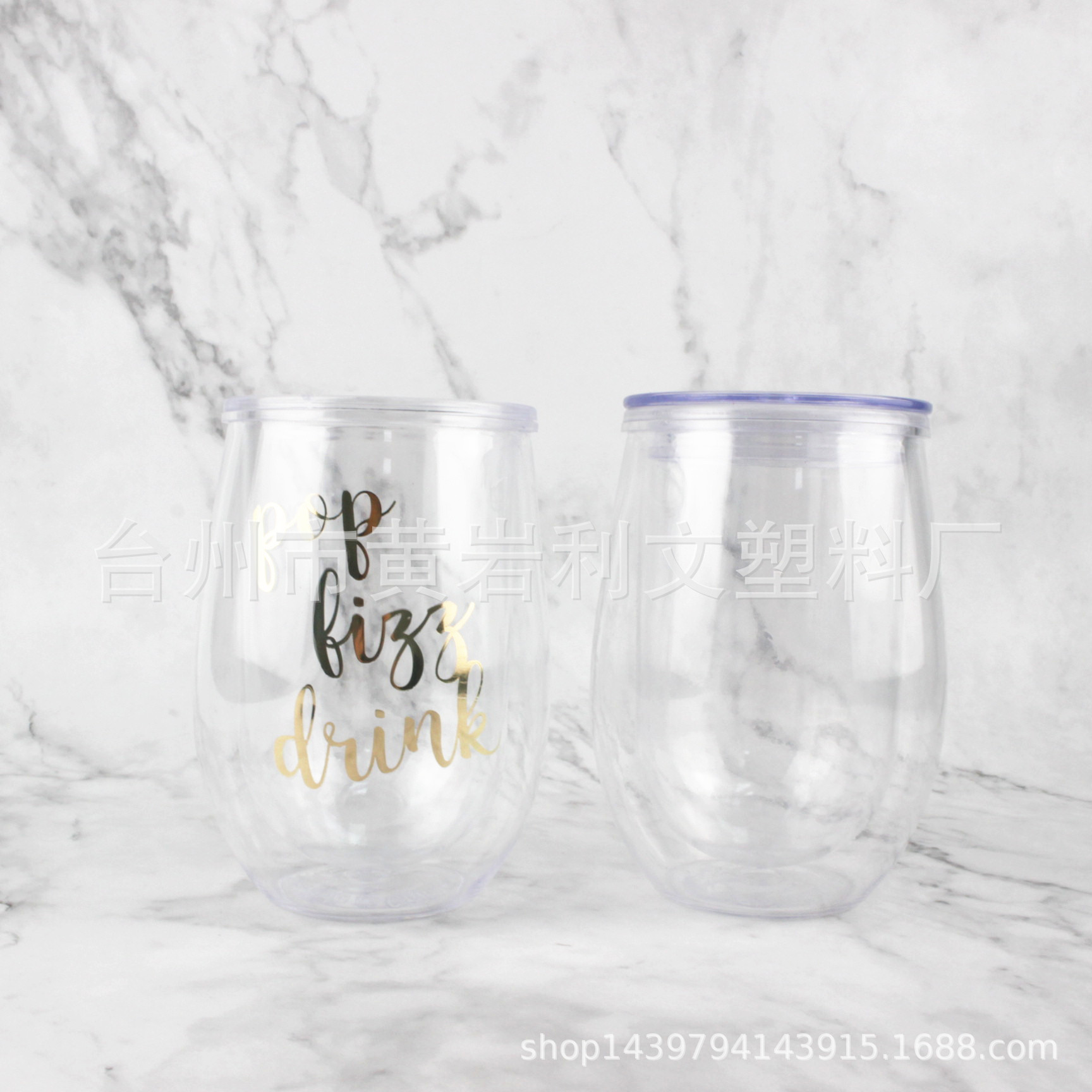 厂家直销 新款双层吸管杯 PS蛋杯闪粉 带盖塑料吸管杯 可定