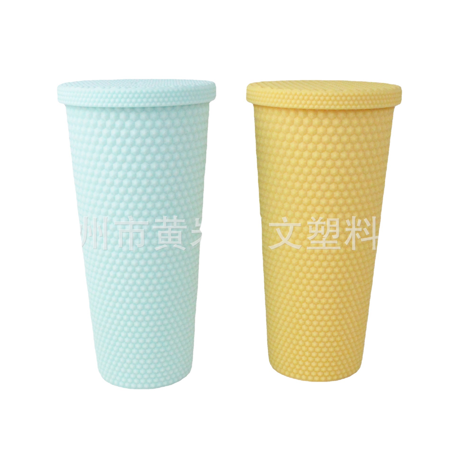 700ML双层吸管杯 手感油 哑光榴莲杯 钻石双层塑料吸管杯