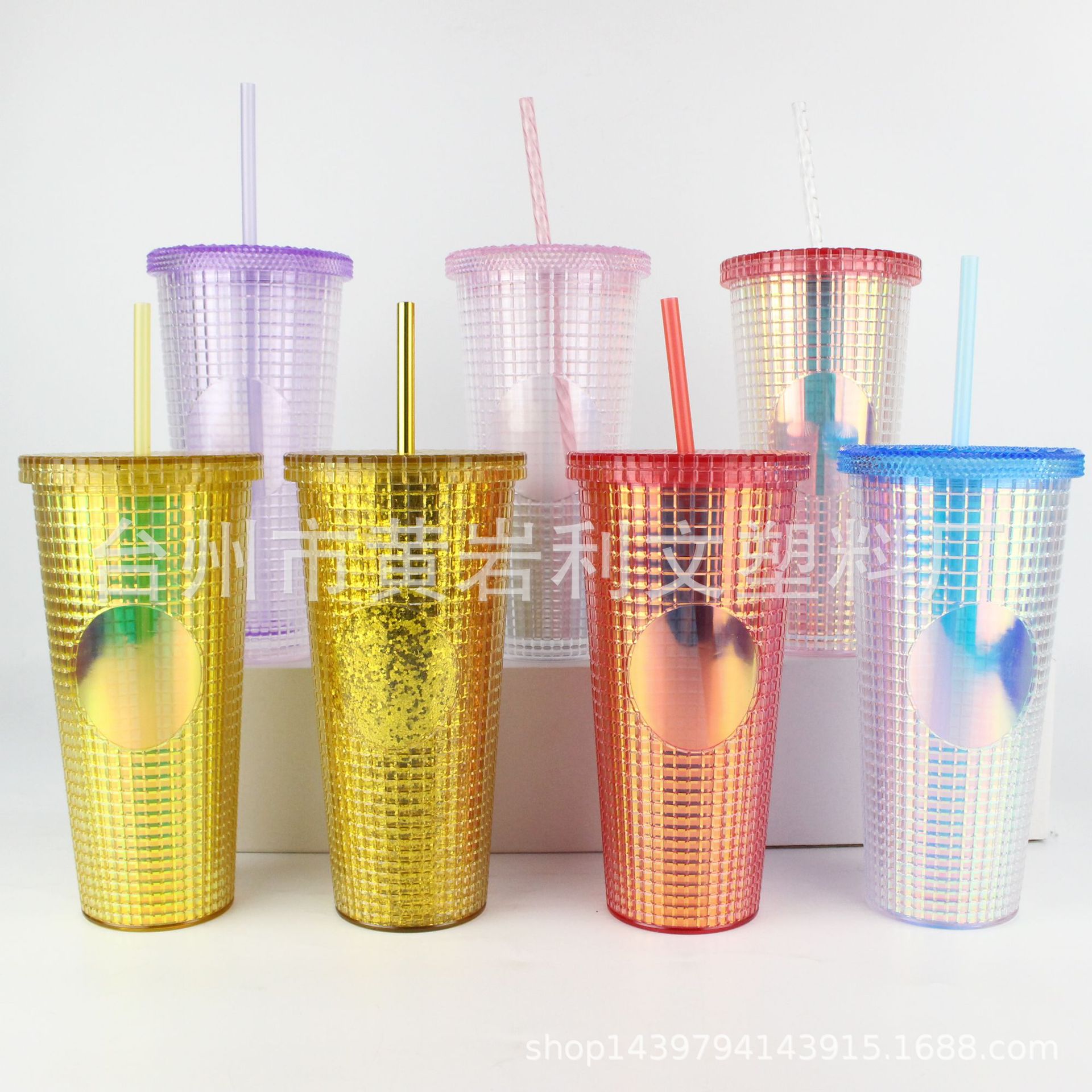 璀璨星空方块菱格杯 20OZ/600ML双层吸管杯 可印刷 PS塑料冰饮杯
