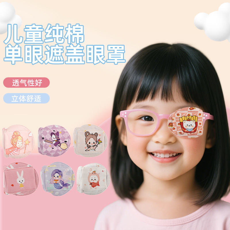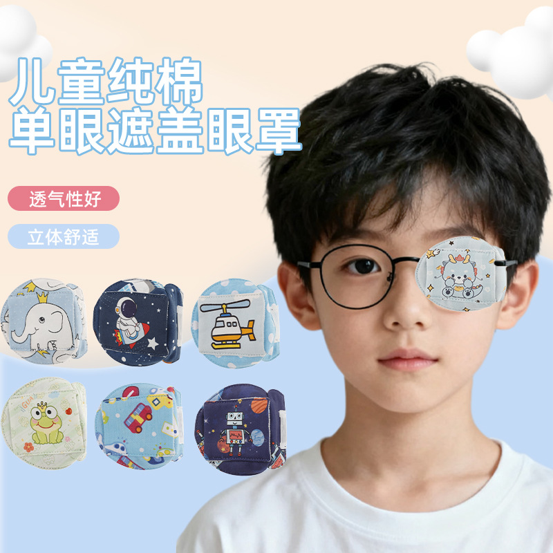 经典款单眼眼罩遮光全棉单眼遮盖可爱卡通立体儿童眼镜遮盖罩批发