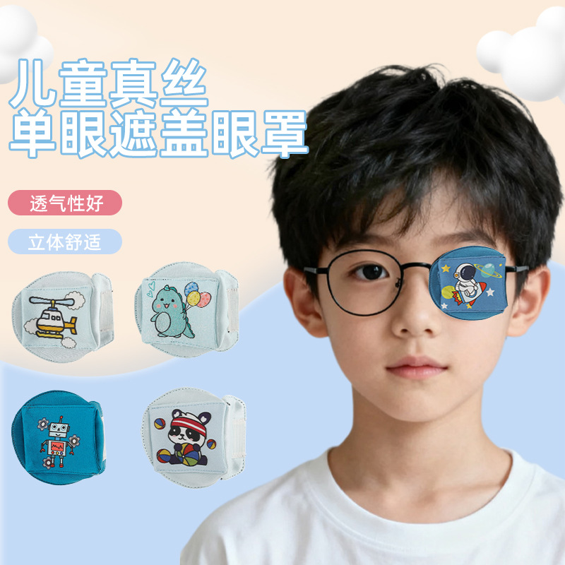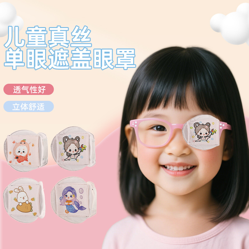 卡通款儿童真丝单眼眼罩女款全遮盖透气可水洗训练遮光单眼眼镜罩