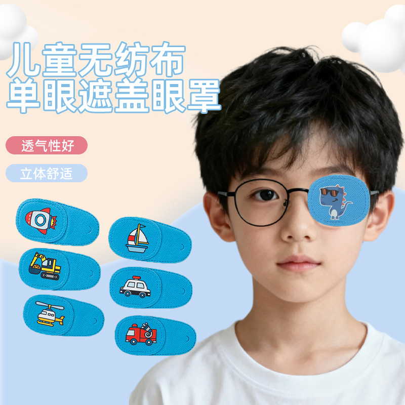 男款单眼遮盖眼罩儿童弱视训练遮光眼罩斜视纠正卡通印花眼罩批发