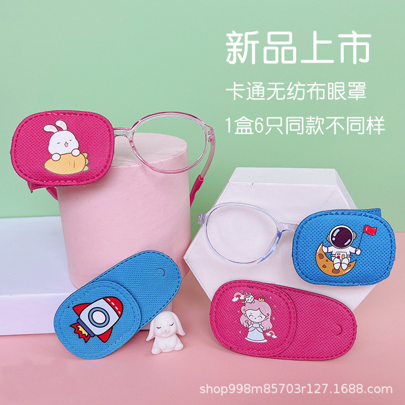 女款无纺布眼镜罩视力训练儿童单眼遮盖护眼罩彩色卡通印花眼镜罩