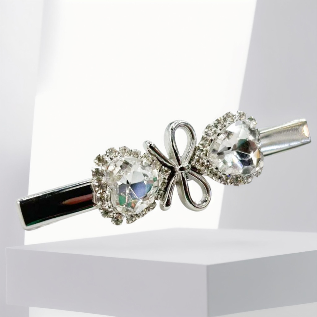 高级感闪亮银色蝴蝶结爱心水钻发夹少女精致侧边刘海夹甜美发饰