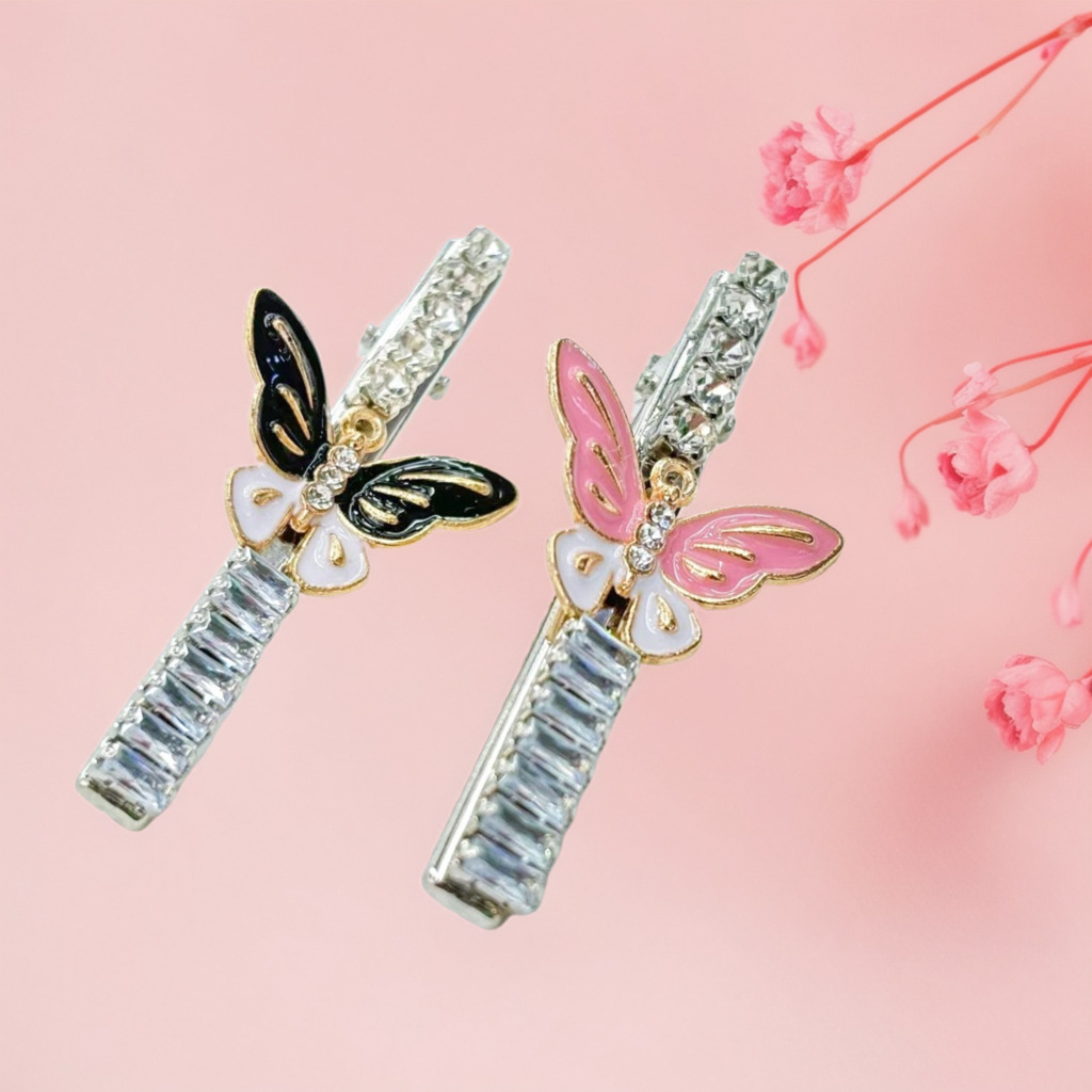 韩式ins网红蝴蝶镶钻鸭嘴夹刘海夹 时尚百搭款水钻剪刀侧边夹发卡