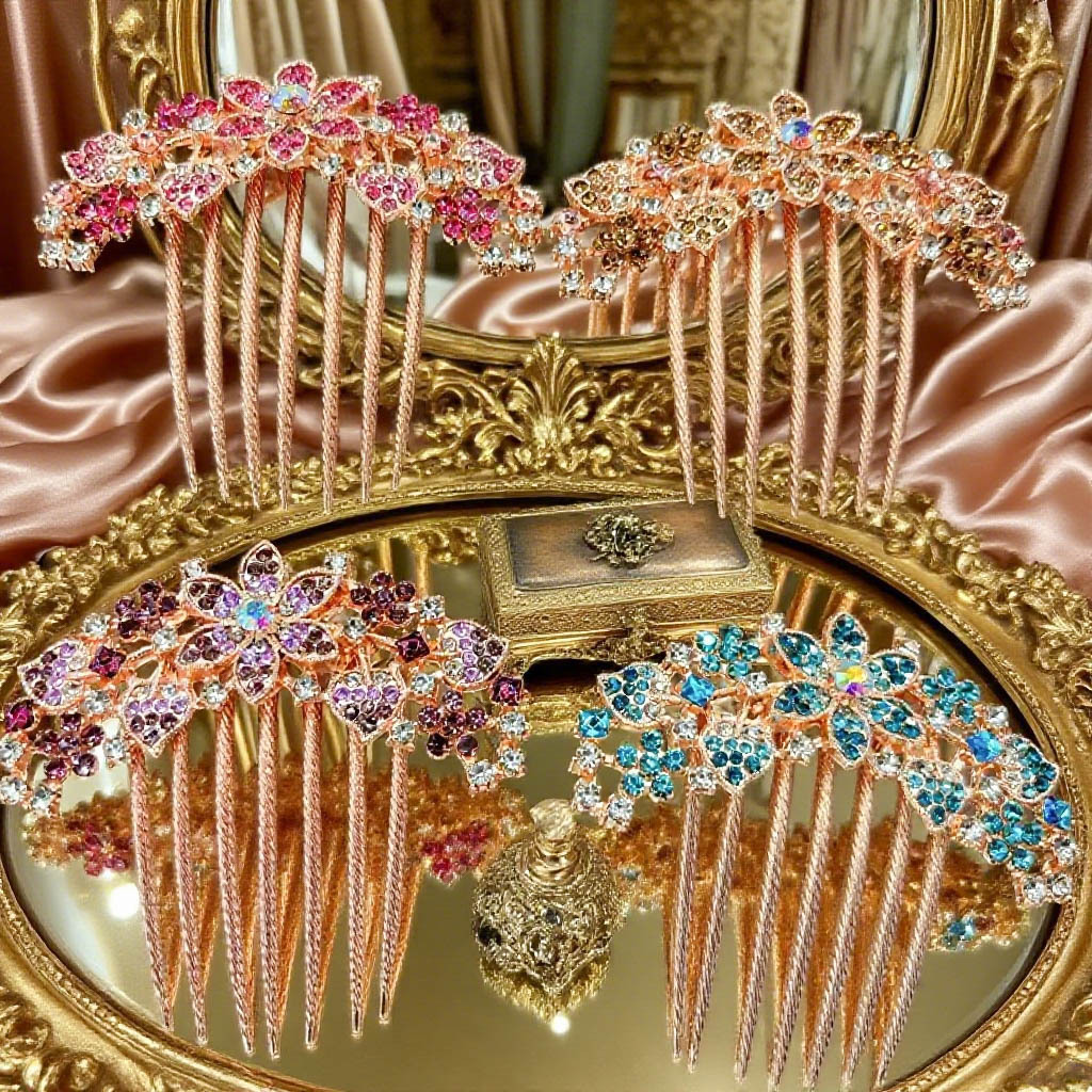 优雅盘发插梳发饰大号花朵水钻妈妈头饰复古轻奢后脑勺五齿梳发簪