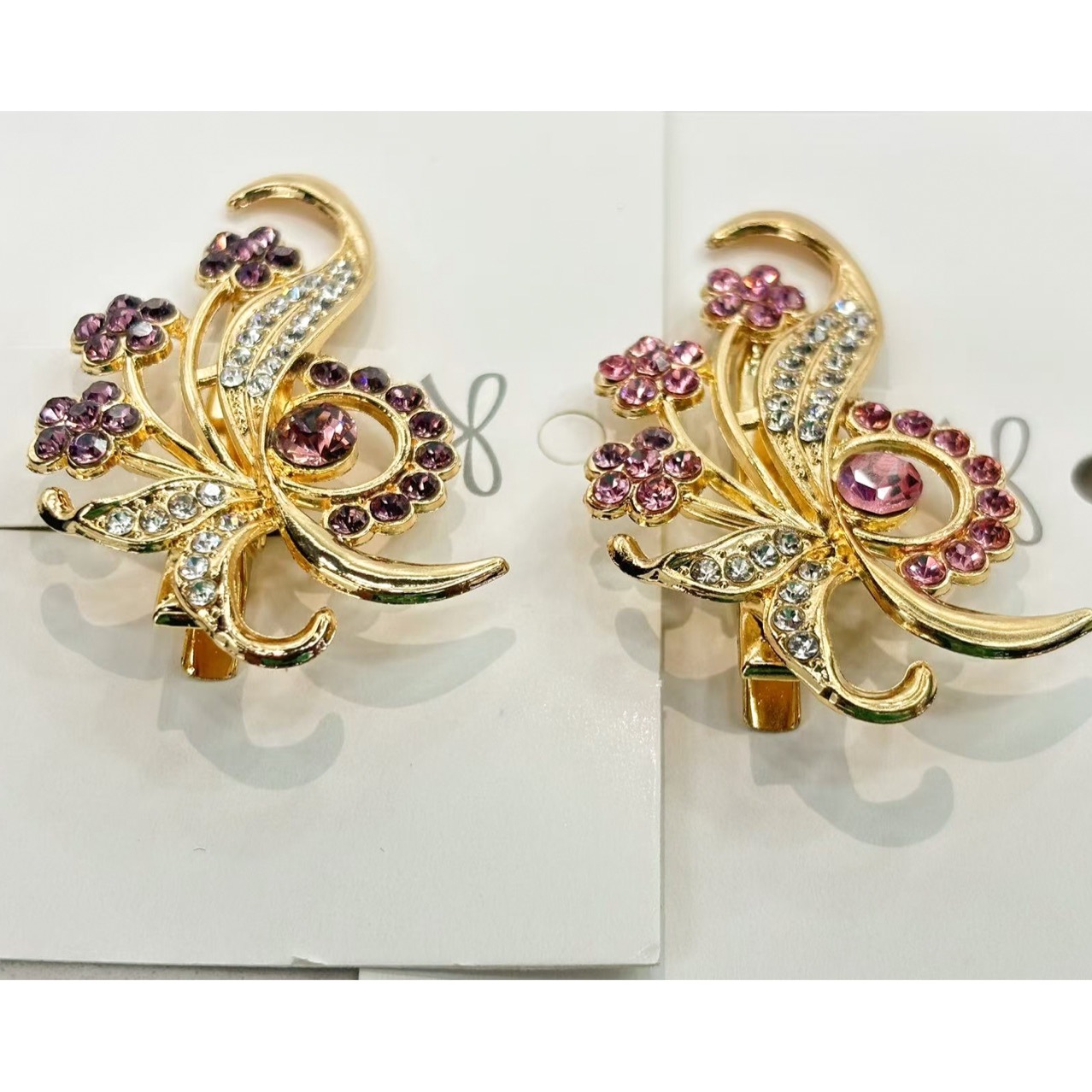 新款法式水钻蝴蝶结发夹可爱椭圆形碎发侧边夹女轻奢风鸭嘴夹发饰