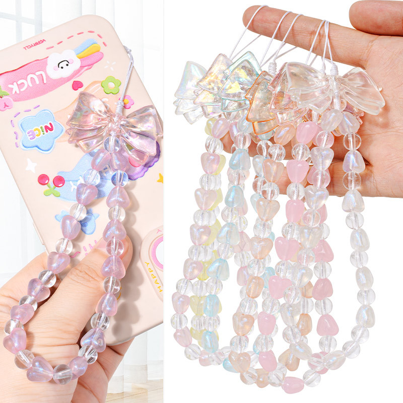 新款蝴蝶结爱心手机链串珠手机壳挂饰钥匙扣包包挂件防丢手腕挂链