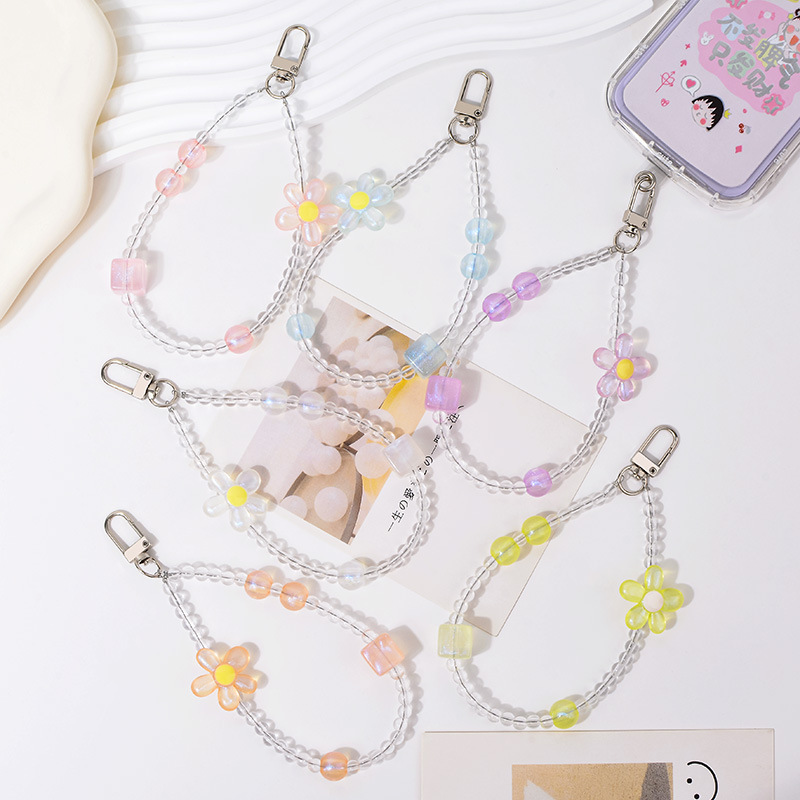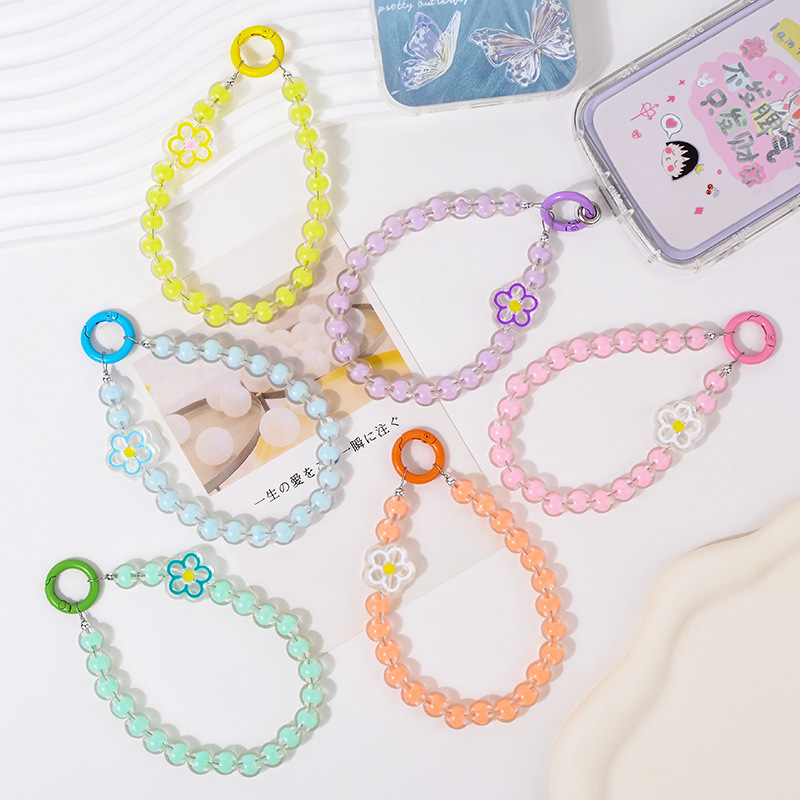 串珠挂饰手机链挂件亚克力珠手机壳钥匙扣包包防丢挂绳饰品花朵