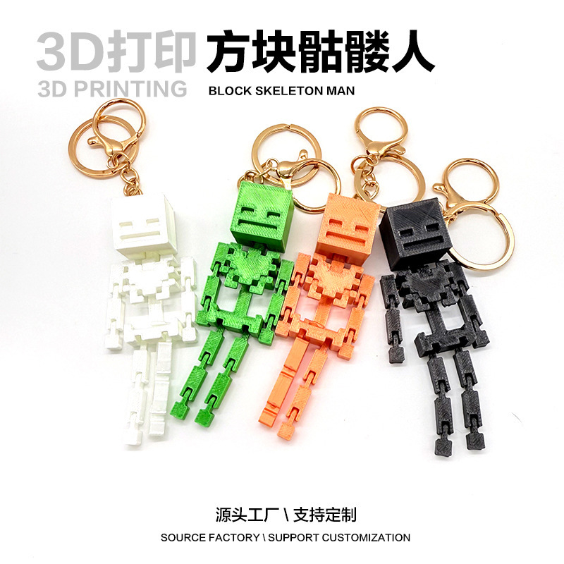 3D打印万圣节骷髅人造型我的世界关节可活动钥匙扣挂件玩具礼品