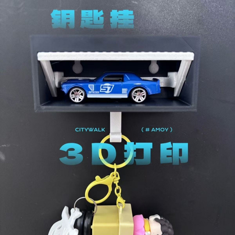 爆品3D打印新款车库放金属汽车钥匙扣挂墙设计玩具挂钩创意