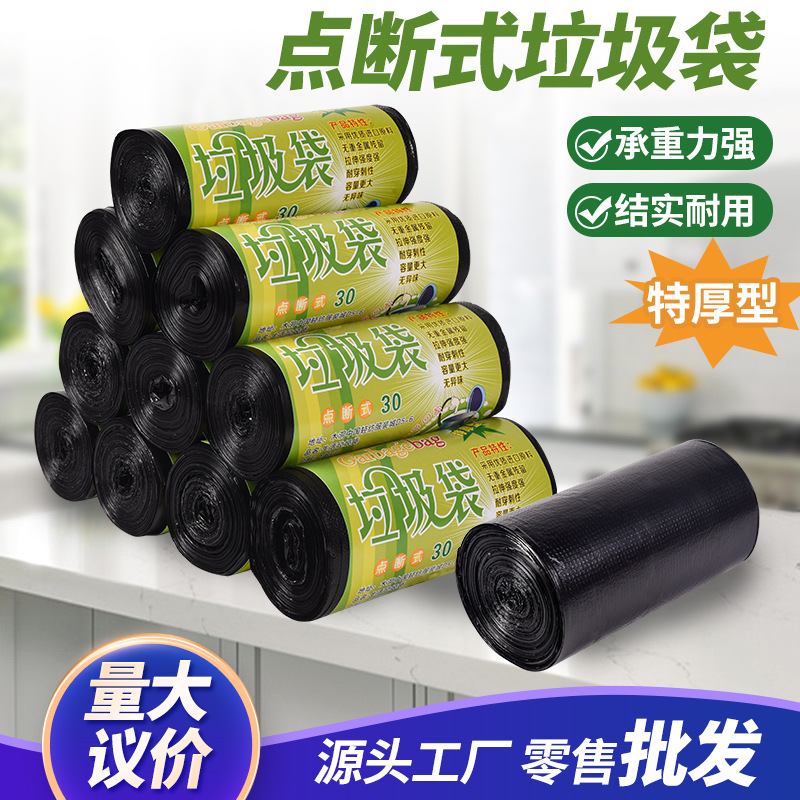 平口式一次性加厚特厚垃圾袋家用日用家居百货点断式黑色塑料袋