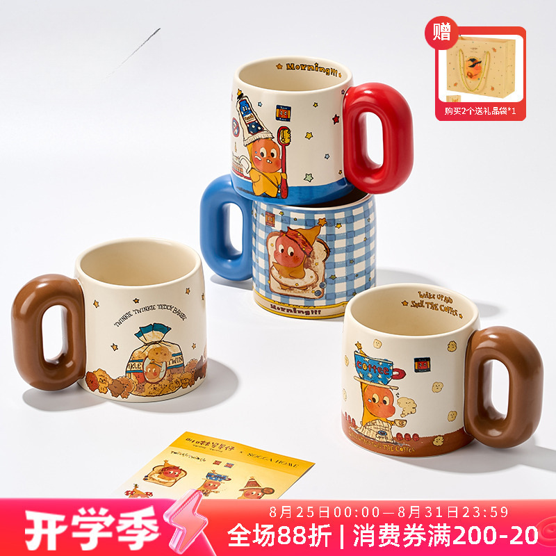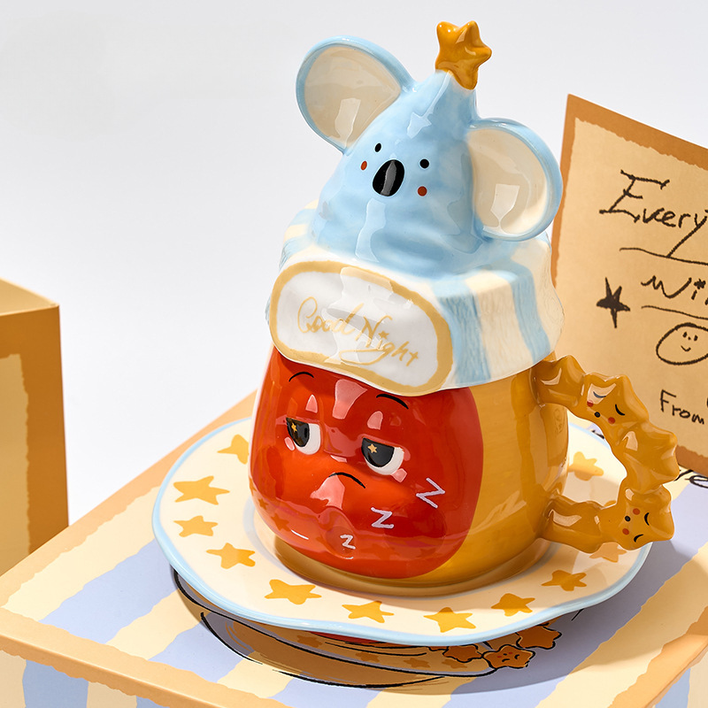 星星人杯子咖啡杯马克杯带盖陶瓷生日礼物女生男生儿童水杯