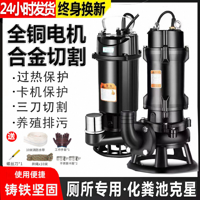 污水泵切割式220V小型家用抽粪泥浆排污泵潜水泵化粪池抽水泵380V