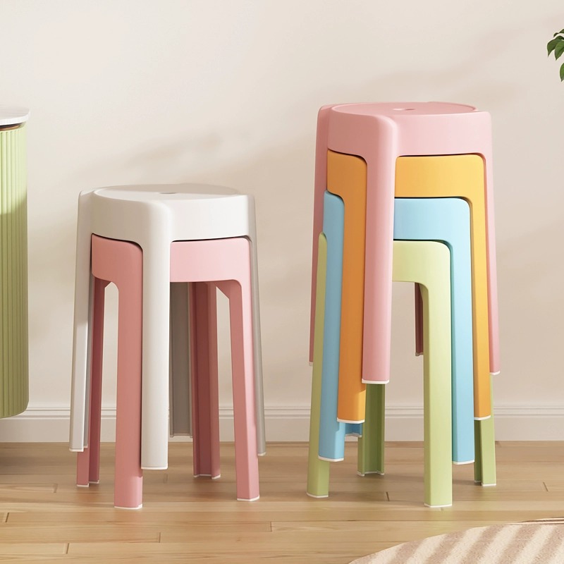 凳子家用塑料加厚高圆凳可叠放风车椅子餐桌备用吃饭板凳四脚独凳