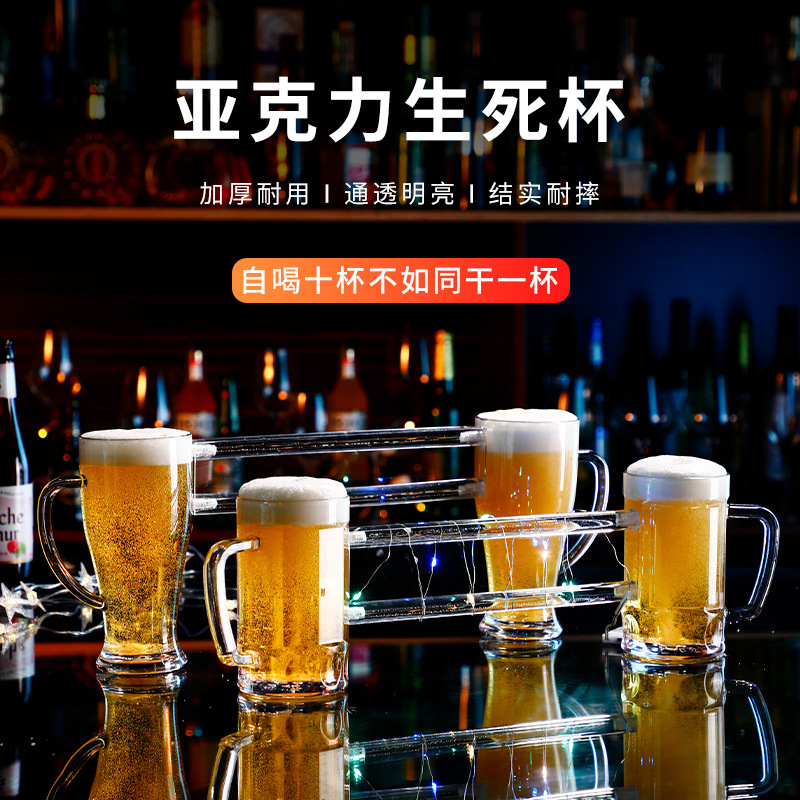 同归于尽啤酒杯网红生死杯酒杯可定LOGO兄弟杯连体双人同饮杯