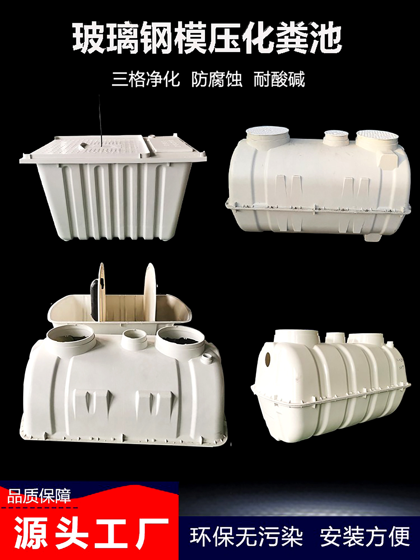 化粪池玻璃钢家用化粪桶新款密封污水罐农村厕所三格化粪池厂家