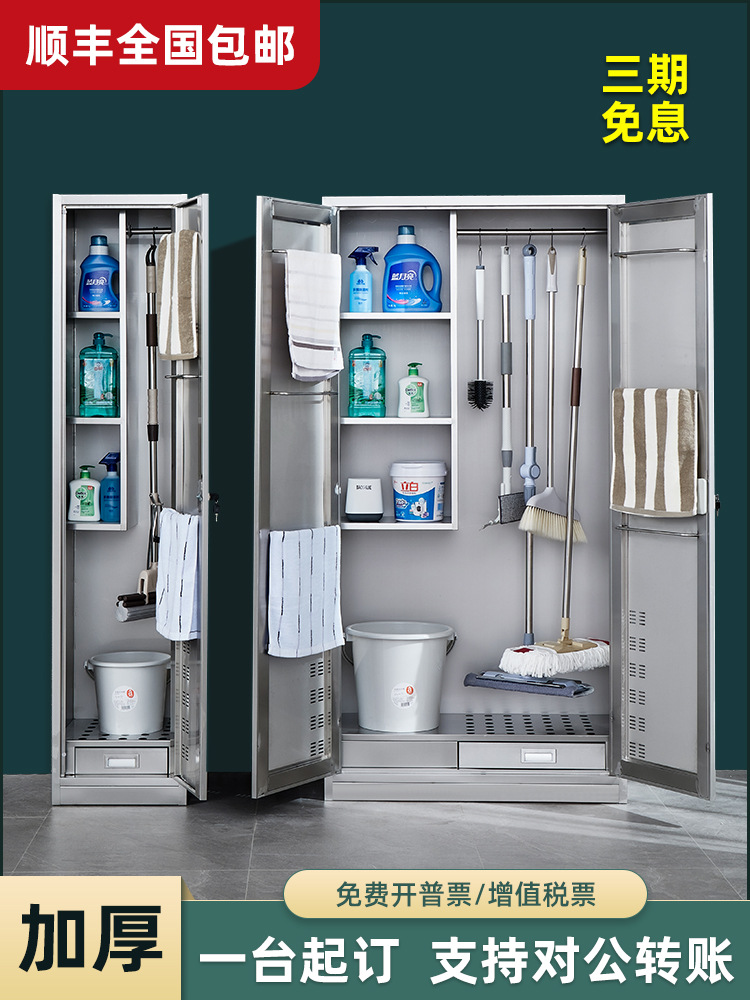 不锈钢清洁柜铁皮柜卫生工具保洁柜拖把防锈储物柜学校家用收纳柜