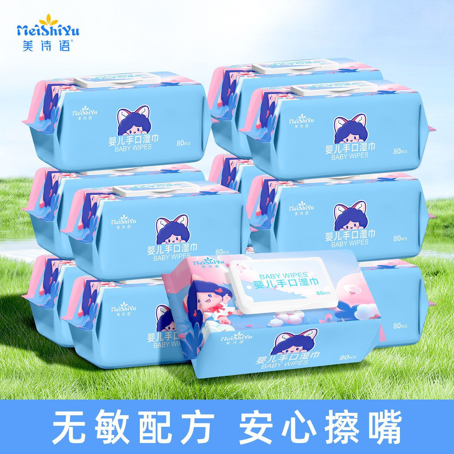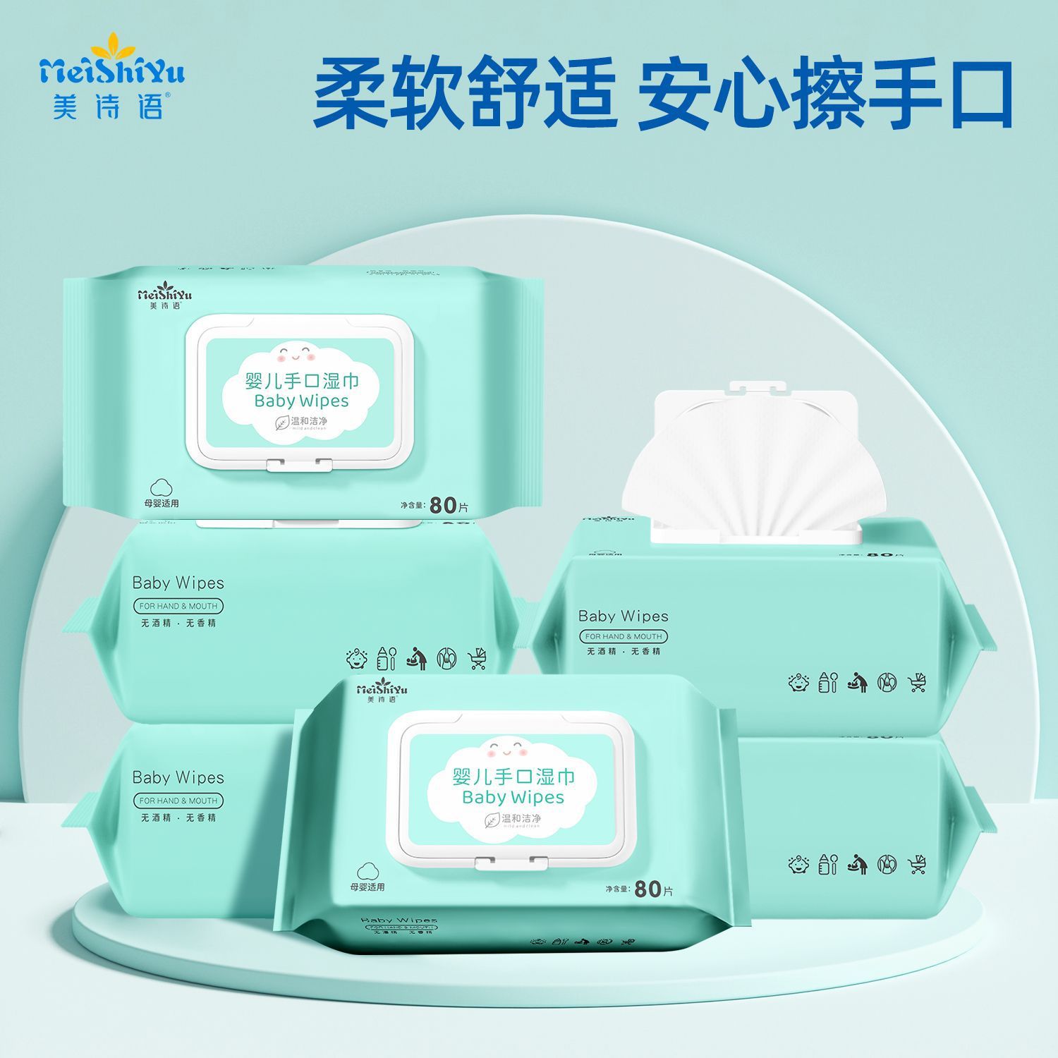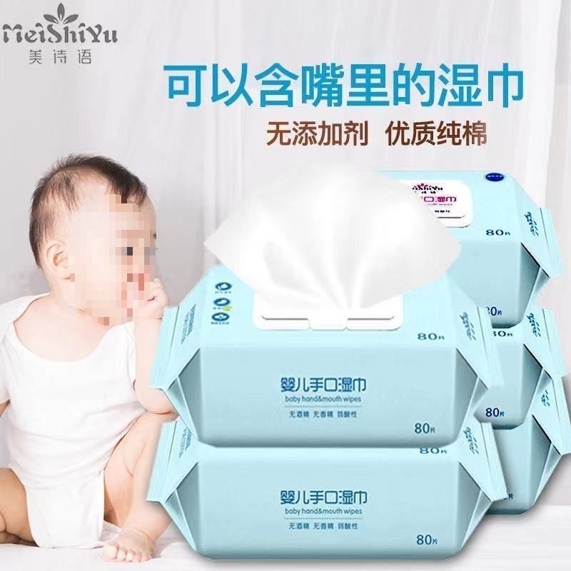 美诗语80抽婴儿湿巾新生儿手口屁湿纸巾大包装宿舍大学生成人