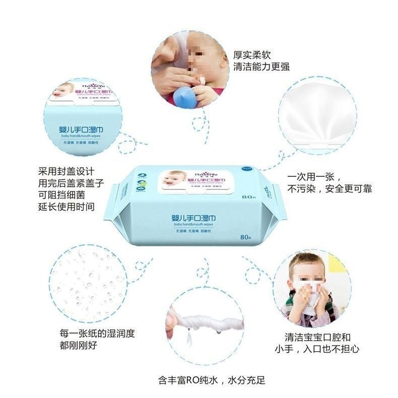 美诗语婴儿手口湿巾新生儿宝宝湿巾大学生 宿舍80带盖深圳