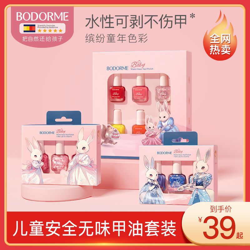 贝德美儿童指甲油水性可溶解可撕拉指甲油女孩礼物6色装 6ml*6