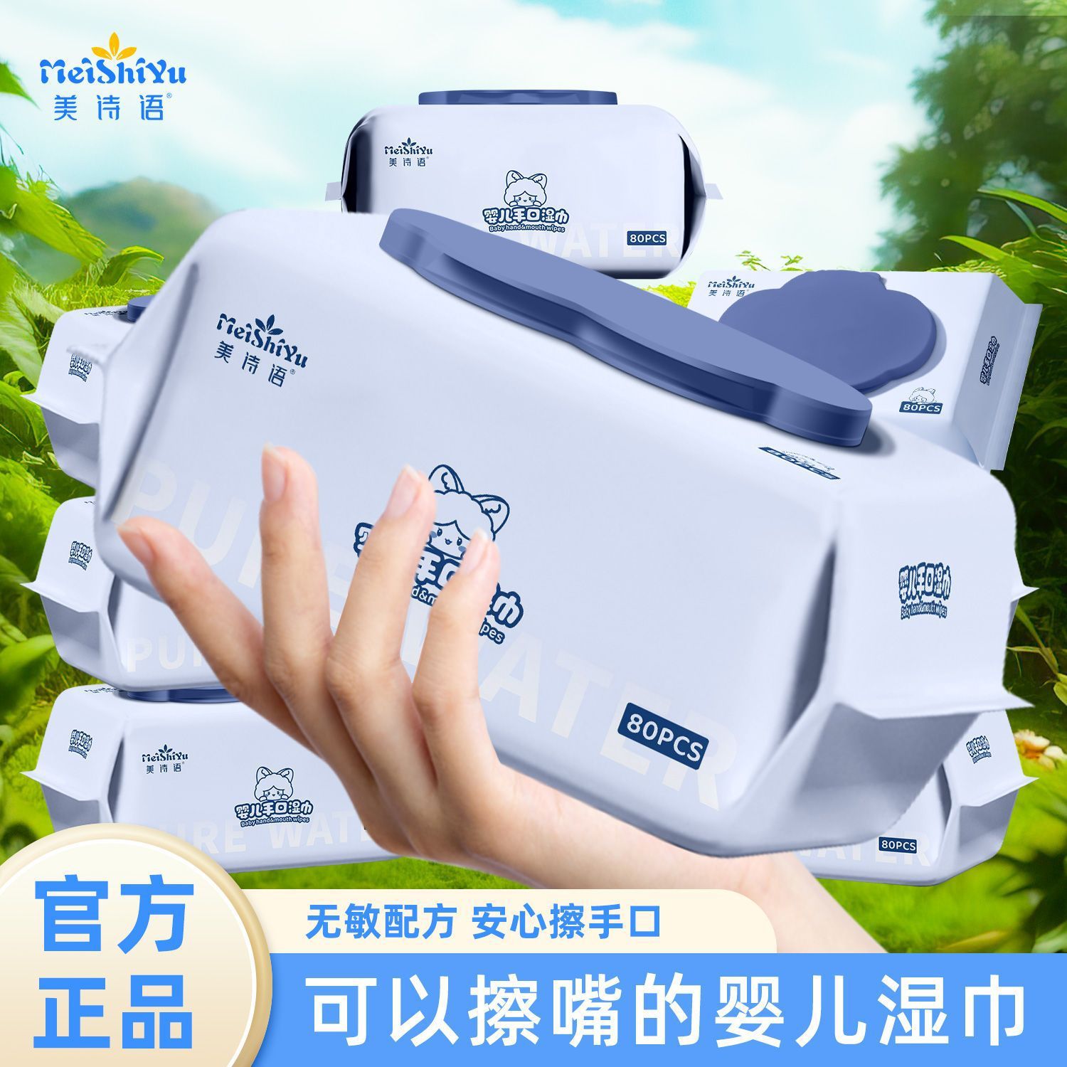 美诗语婴儿手口湿巾80片装带盖大包湿纸巾新生儿抽取式宝宝适用