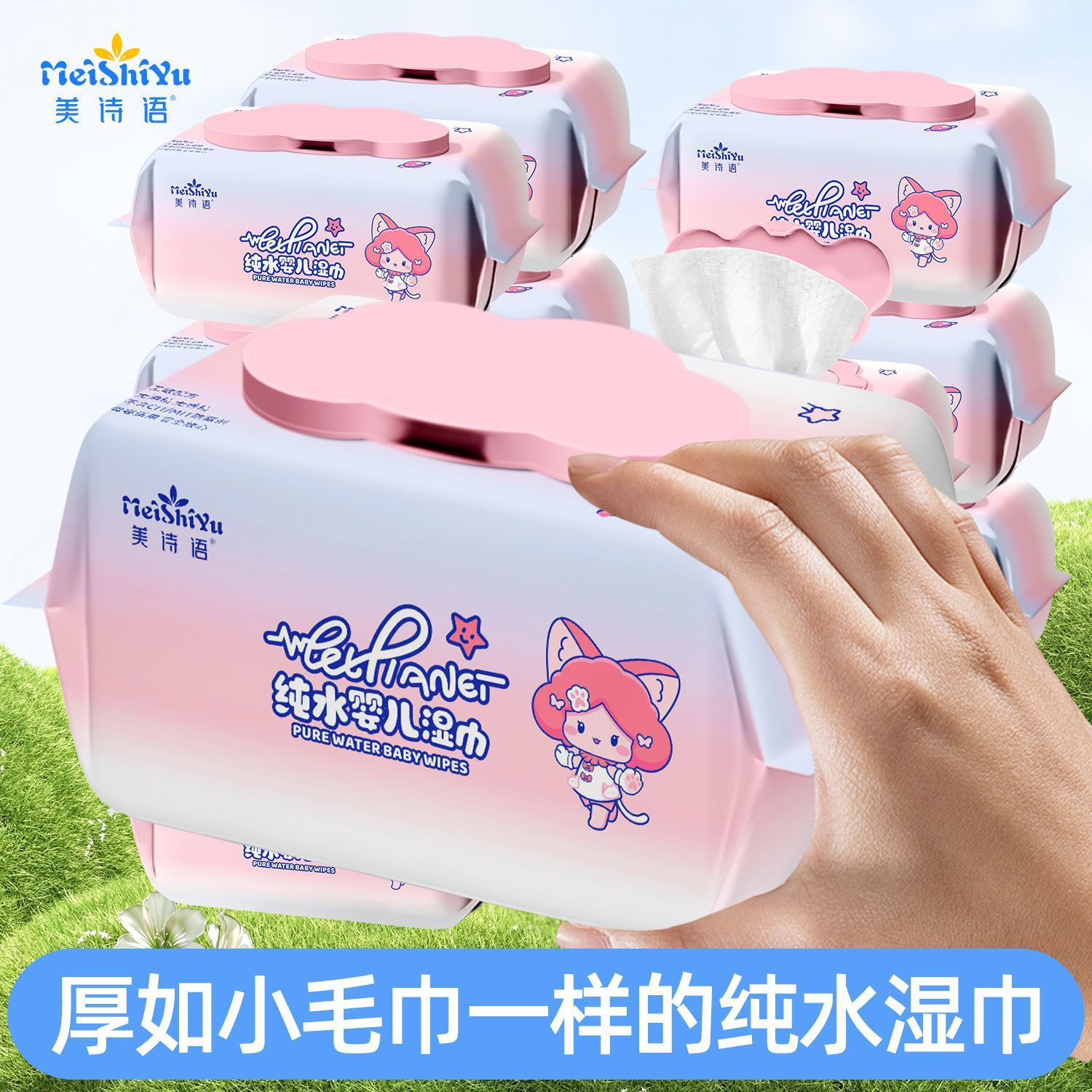 美诗语湿巾孕婴可用加大加厚大包婴儿湿纸巾纯水手口
