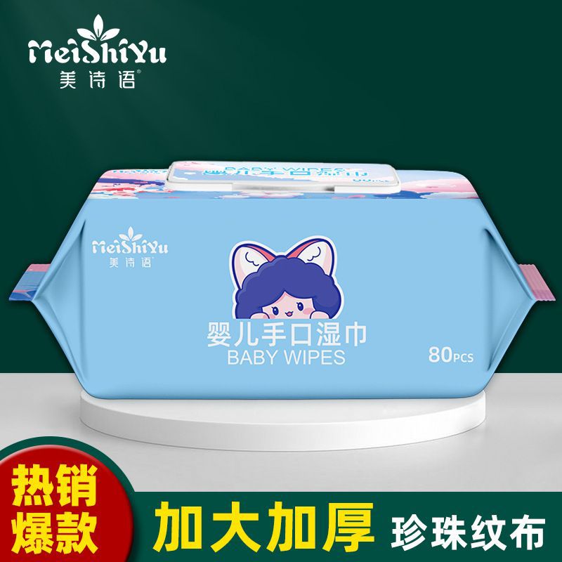 美诗语湿巾婴儿80抽加厚带盖大包湿纸巾家用新生儿湿巾纸