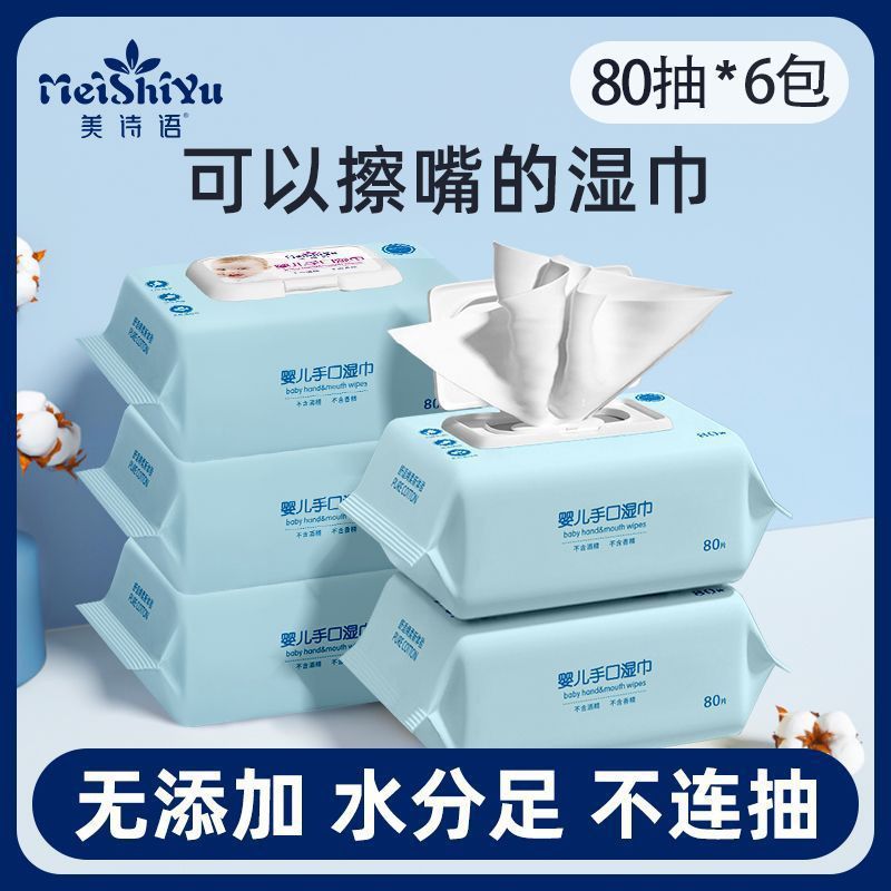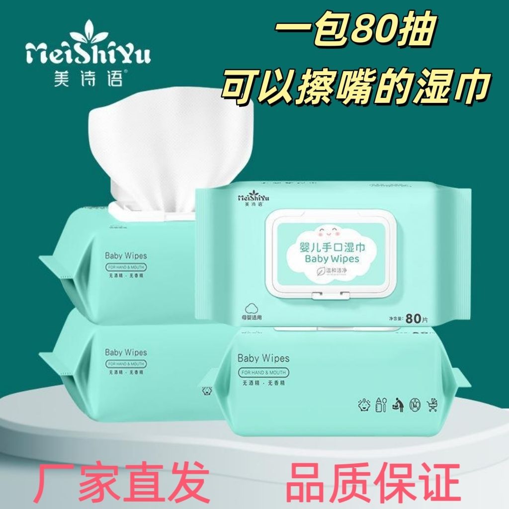 美诗语湿巾宝宝婴儿手口湿纸巾孕婴可用学生宿80抽湿巾舍家庭装