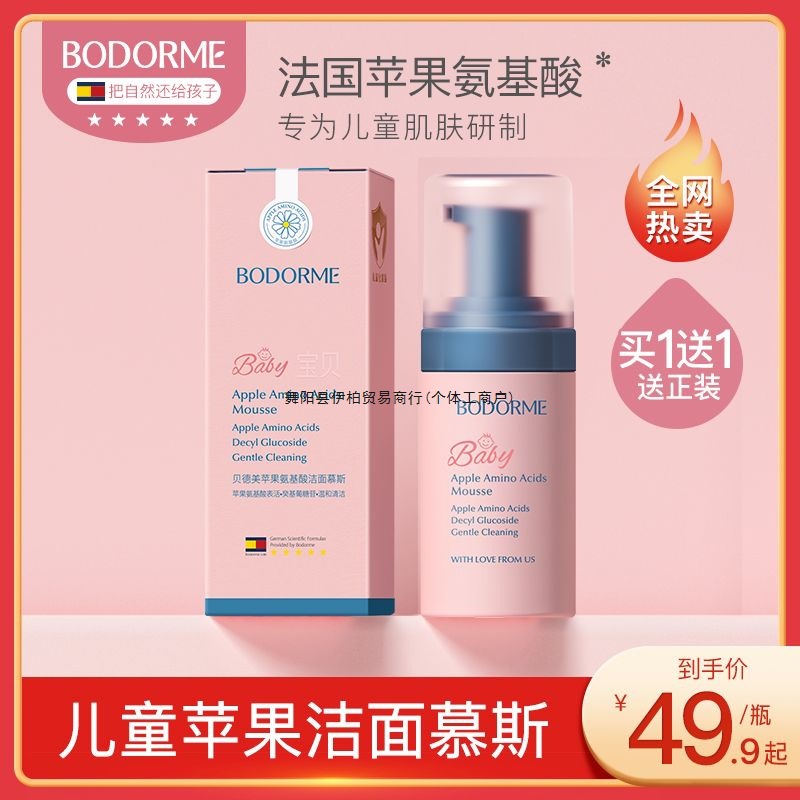 特价贝德美儿童洗面奶氨基酸洁面泡泡宝宝3-9岁-12岁以上女孩男孩